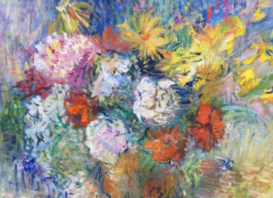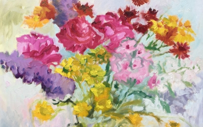 Hier zijn schilderijen te zien met als onderwerp: bloemen, natuur en mensen.