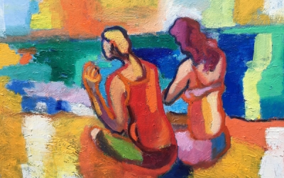 vriendinnen aan zee