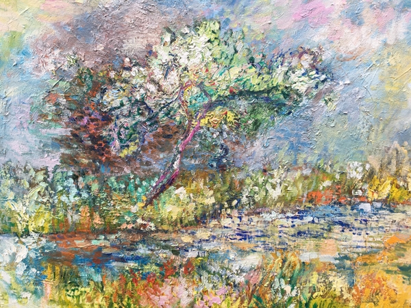 Voorjaarskleuren , geschilderd met paletmes, formaat 70 x 60 cm