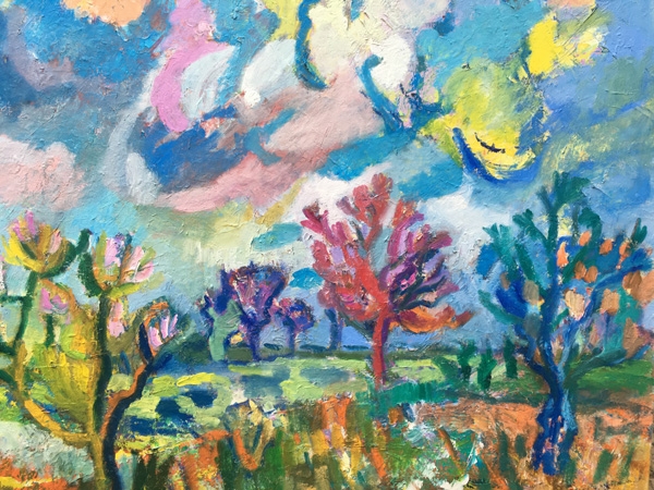 Bomen en wolken, olieverf, formaat 70 x 60 cm