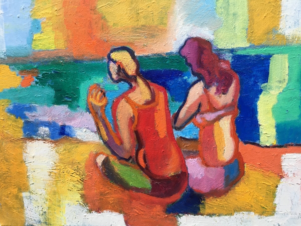 Vakantie op het strand in zonnige kleuren, olieverf, formaat 50 x 40 cm